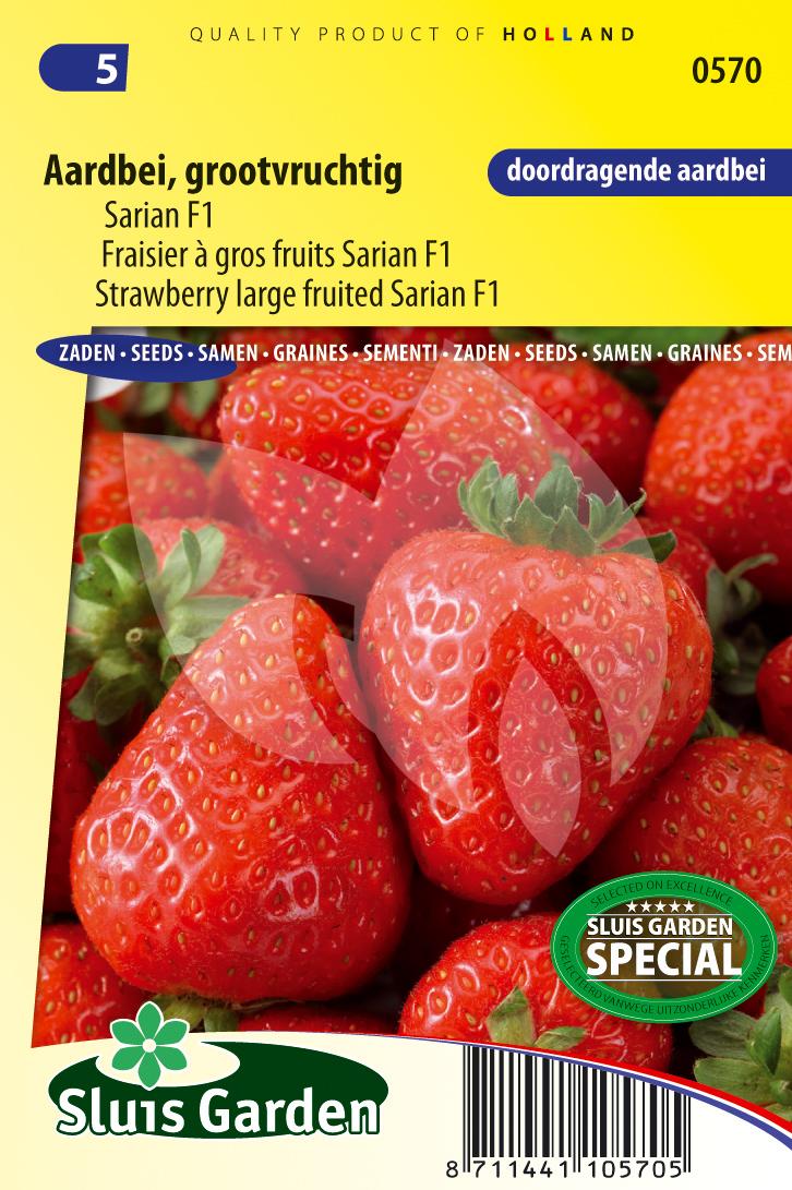 In maart kunt u gaan voorzaaien op warmte onder glas. Dun uitzaaien en het zaad afdekken met een dun laagje grond. Na opkomst van het eerste echte blad de zaailingen verspenen. De planten voldoende laten afharden voordat u ze in de tuin plant en uitplanten op 60 cm afstand van elkaar. Breng stro rond de planten aan om vruchtrot tegen te gaan. Deze doordragende aardbei kan ook op flinke potten worden geteeld. Met de Sarian heeft u vrij grote, zoete vruchten gedurende de hele zomer!