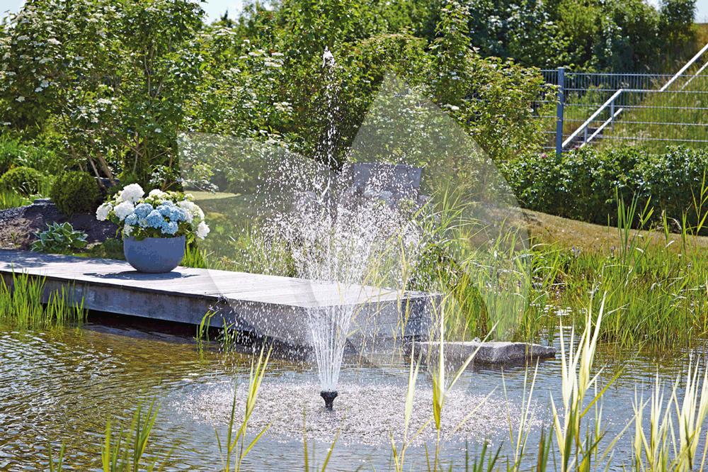De sterke Aquarius Fountain Set Eco met energiezuinige aandrijving is verkrijgbaar in drie verschillende uitvoeringen. De fonteinpomp wordt geleverd in een complete set voor een snelle installatie en comfortabele bediening. Dankzij de telescopische sproeikop verlenging en een zwenkkop kan de fontein op ieder gewenste positie vastgezet worden. De fontein is voorzien van een tweede, apart regelbare uitgang. Hier kunt u eventueel een kleine beekloop of een spuitfiguur op aan sluiten. Voor blijvende gelijkmatige sproeibeelden is de adapter voorzien van een rvs zeef met een fijnfilter. Dankzij de Environmental Function Control (EFC) schakelt de pomp bij drooglopen of blokkeren automatisch uit en wordt schade aan het apparaat voorkomen.