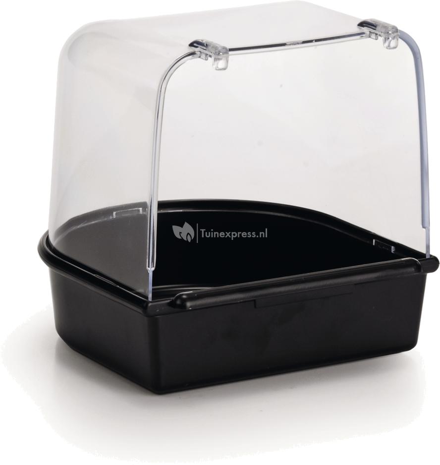 Een plastic badhuisje, recht model. Makkelijk aan de kooi te bevestigen. Uw vogel is klaar om te gaan badderen. Kleur: zwart.
