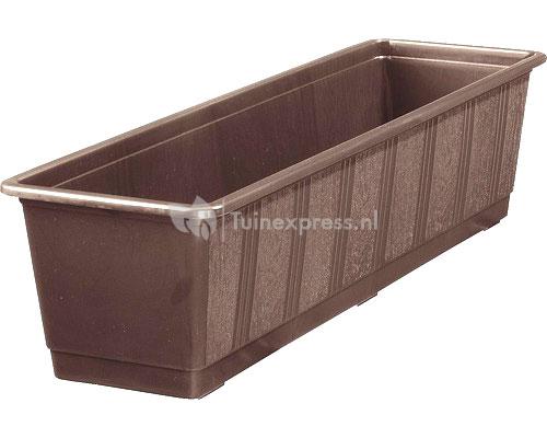 De balkonbak heeft de kleur bruin waardoor hij eenvoudig te combineren is. Mocht u toch liever een andere kleur hebben, de balkonbak is verkrijgbaar in vijf verschillende kleuren. De balkonbak standaard bruin is verkrijgbaar in vier formaten.