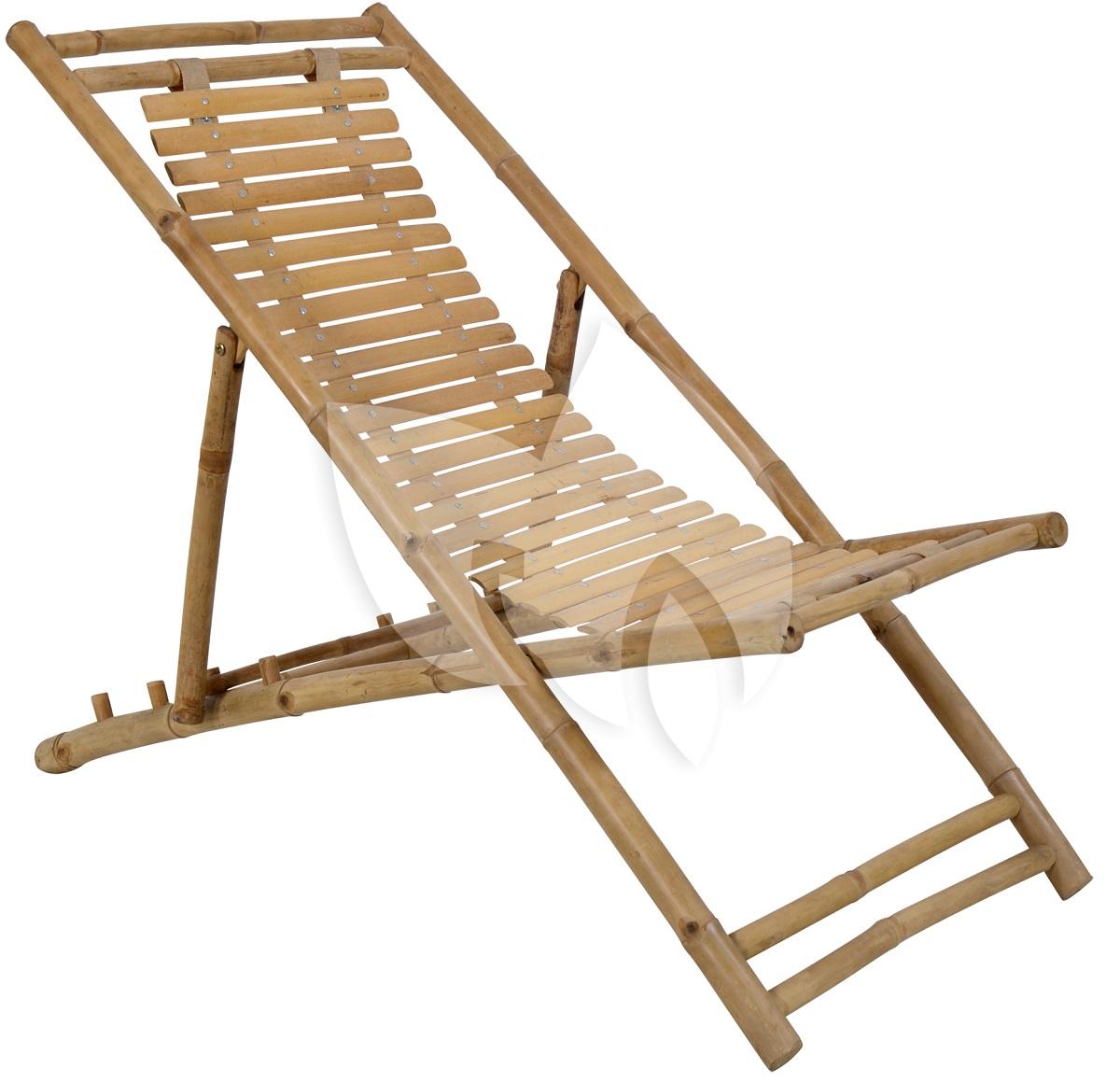Deze strandstoel heeft een bamboe frame en zitting. Het frame is gemaakt van ruwe bamboe scheuten en de zitting is van bamboe plankjes die zijn bevestigd op een stevige stoffen band. De strandstoel van bamboe is in vier standen verstelbaar. De stoel kan ingeklapt zowel plat als staand worden opgeborgen. Bamboe kan naar verloop van tijd vergrijzen door invloeden van vocht en UV-straling.
