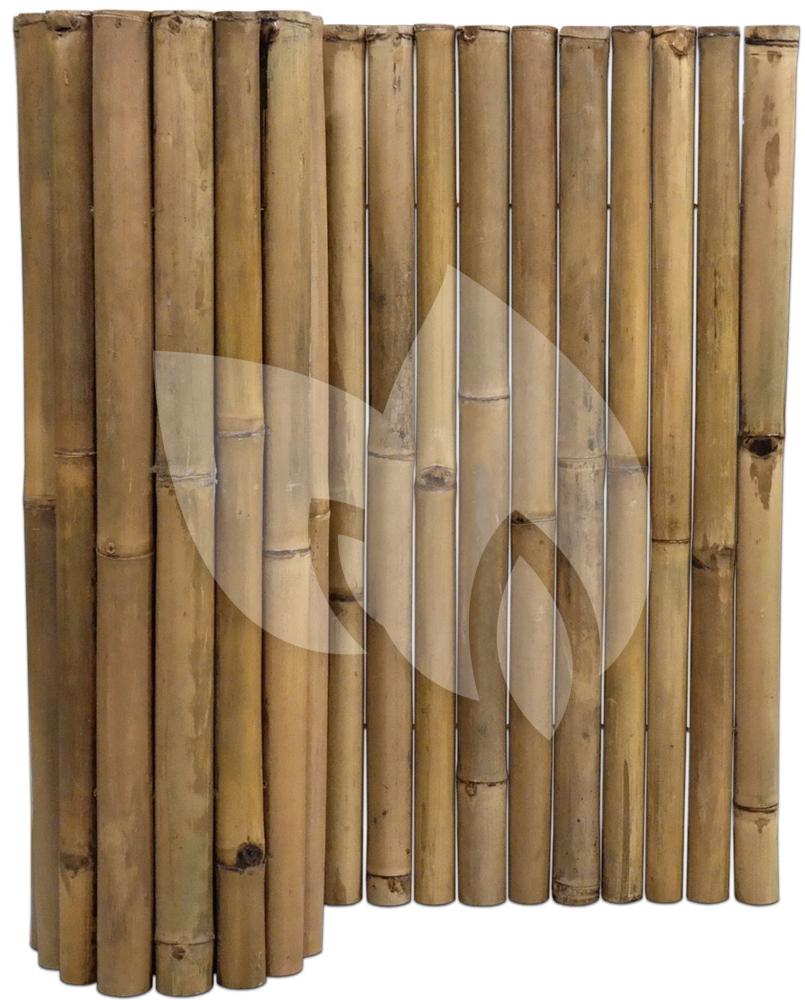 Deze bamboemat is gemaakt van robuuste bamboestokken met een diameter van 50 tot 60mm. Hierdoor krijgt uw tuinafscheiding een stoere uitstraling. Deze bamboemat heeft zijn eigen natuurlijke kleur en is afgewerkt met een blanke lak. Om de duurzaamheid te verhogen is de bamboemat aan de bovenzijde gesloten met een natuurlijke afdichting. De bamboemat is verbonden door gegalvaniseerd staaldraad en is in hoogte en breedte aan te passen, zo kunt u de bamboemat eenvoudig aanpassen aan uw situatie. Breng een tropische sfeer naar uw tuin met deze robuuste bamboemat!
