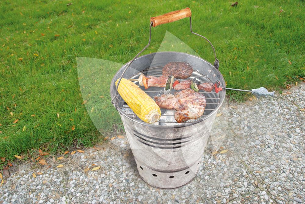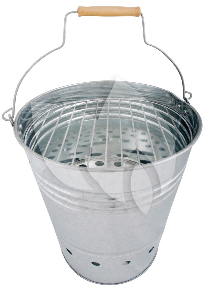 Een handige barbecue die u overal mee naartoe kunt nemen! Deze barbecue is verwerkt in de vorm van een emmer, wat het product makkelijk verplaatsbaar maakt. De barbecue emmer is gemaakt van metaal met een houten handvat. De barbecue emmer beschikt over een grillrooster en gaten onderin die zorgen voor voldoende luchttoevoer.