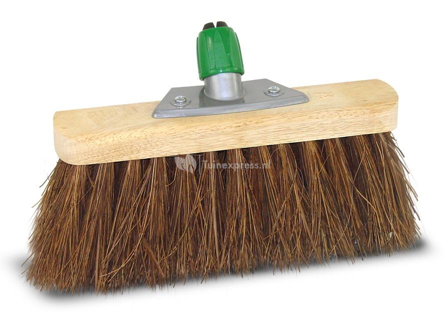 Losse bezem met voorgemonteerde kunststof beugel waar een steel op aangesloten kan worden. Deze bezem is gevuld met harde natuurvezel. Geschikt met name voor buiten gebruik. Voor het verwijderen van droog, grof vuil op ruwe ondergronden zoals de stoep, de parkeerplaats of straat.