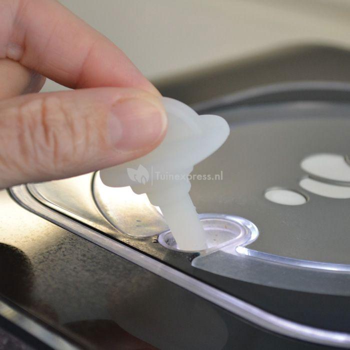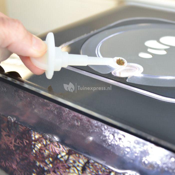 Met deze kleine accessoire kunt u de opening bovenin ieder BiOrb aquarium afsluiten. Zo voorkomt u dat er water uit het aquarium komt en dat er vuil het aquarium inkomt. Wanneer de accessoire in de opening wordt geplaatst kunt u ook meteen zien of het water op het juiste niveau zit, de waterstandmeter geeft precies aan tot waar het water mag komen. Daarnaast kunt u met de kleine lepel in de accessoire uw vissen eten geven.