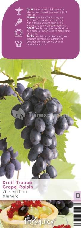 Een zeer geschikte druivensoort om te houden met kinderen is de Glenora. De opbrengst van deze druivenplant zijn namelijk zeer zoete pitloze druiven. De druivenplant is tevens een mooie aanvulling op een siertuin; de sierlijke ranken die zichzelf vastzetten rondom een klimrek of rozenboog geeft een prachtig gezicht, zeker wanneer de plant gevuld is met trossen druiven.