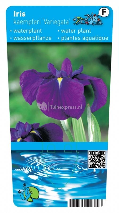 De Bonte Japanse iris bloeit, net als de gewone Japanse iris, met grote, opvallende paars/blauwe bloemen in juni en juli. Het verschil zit in het blad. De lange, zwaardvormige bladeren van de bonte Japanse iris zijn groen/wit gestreept. Ook de bonte Japanse iris houdt van een vochtige bodem tijdens de bloeiperiode. Na deze periode zou de grond iets droger mogen zijn. De iris heeft sterke bladeren. Deze sierplanten doen het prachtig langs uw vijver, al dan niet tussen rotsen. De plant laat zich makkelijk combineren met andere planten en maakt van uw vijver een plaatje!