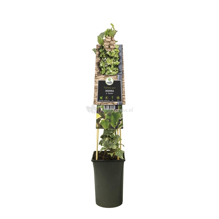 Deze bonte klimop is dof van kleur. De groen/grijze klimop is de meest bekende en de meest voorkomende snel groeiende klimopsoort. Hoewel de plant wordt aangeboden als klimplant is het ook een zeer geschikte plant als bodembedekker. Met worteltjes zet hij zichzelf vast in de grond. Met een bodembedekker in uw tuin heeft onkruid minder kans!