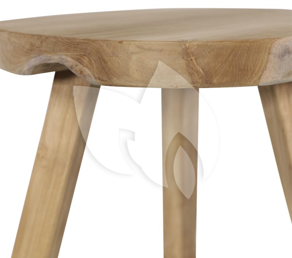 Dit driepoot krukje heeft een stevig frame. De zitting van het krukje heeft de natuurlijke vormen van een boomstam en is 35mm dik. De mix van strakke poten en de natuurlijke vorm van het zitje geeft een speels effect aan het krukje. Oneffenheden in het hout kunnen voorkomen omdat teak een natuurproduct is. Dit kan gaan werken onder verschillende omstandigheden en deze werking van het hout is niet te voorkomen. De houtkleur zorgt dat het krukje in vrijwel ieder interieur te combineren is, of u nu een meer klassieke inrichting heeft of een modern, met de juiste aankleding past dit krukje altijd! Uiteraard kunt u het krukje ook prima als bijzettafeltje gebruiken bij een stoel of bank; handig om uw hapje en drankje bij de hand te hebben!