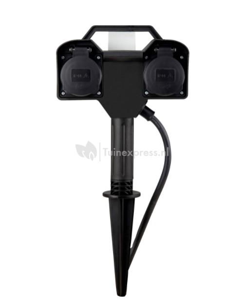 Snel en gemakkelijk een extra stroompunt nodig in de tuin? Het tweevoudige buitenstopcontact met afstandbediening is uitgevoerd in zwart kunststof en heeft 2 stroompunten die beide aan de voorzijde zijn gesitueerd. De handzame afstandbediening wordt meegeleverd. Door de grondpin is het buitenstopcontact eenvoudig te plaatsen in de aarde. Het bijgeleverde snoer is 1,5 m lang inclusief stekker.
