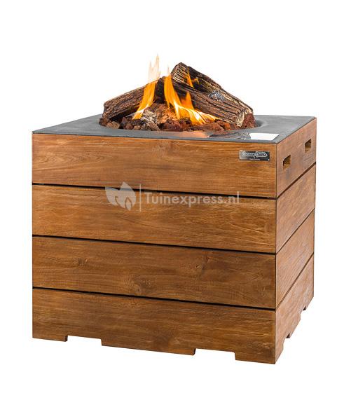 De Cocoon haard is vervaardigd uit duurzaam teakhout en afgewerkt met een antraciet bovenblad. Het materiaal teakhout is goud-bruine van kleur, heeft een lange levensduur en maar weinig tot geen onderhoud nodig. Teakhout kan bijna alle weersomstandigheden weerstaan waardoor u de vuurtafel het hele jaar door buiten kunt laten staan. Afdekken na gebruik en bescherming tegen weersinvloeden door middel van een beschermhoes wordt wel aangeraden.