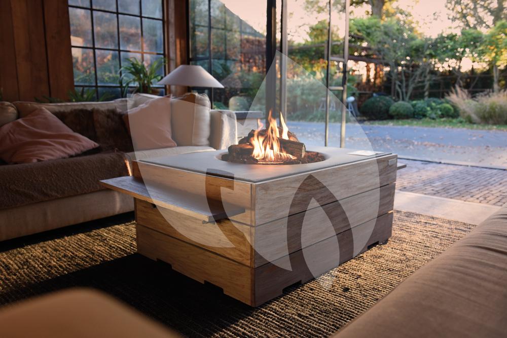 De Cocoon haard werkt op gas en is zonder rookkanaal te plaatsen. Hierdoor is de vuurtafel gemakkelijk in gebruik en toegankelijk voor iedereen. De buitenhaard is in principe een luxe designtafel voorzien van een ingebouwde gashaard. De RVS-brander van 19.5 kW wordt mooi gecamoufleerd door optische lavastenen en houtblokken, waardoor het vuur op een echt houtgestookt vlammenspel. U heeft alleen geen last van rook of rondspringende vonken! De vuurtafel is zeer gebruiksvriendelijk en veilig in gebruik. De haard is door middel van de elektronische ontsteking gemakkelijk te ontsteken en met de draaiknop kunt u de hoogte van de vlam afstellen. Zo kunt u zelf bepalen of u een kleine, middelgrote of grote vlam wilt. De elektronische ontsteking met thermokoppel heeft een veiligheidsontwerp dat CE is goedgekeurd.