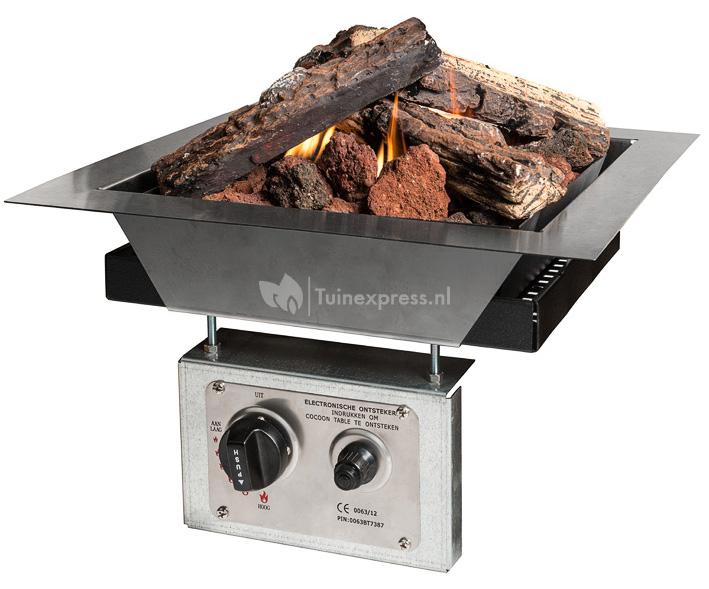 De Cocoon inbouwbrander wordt standaard geleverd met lavastenen, houtblokken, een rubberen gasslang (1m) en een deksel. De brander dient nog wel aangesloten te worden op een gasfles (propaan/butaan) en heeft een 30 mBar gasdrukregelaar nodig. Let bij de vuurtafel wel op dat u hem gebruikt in combinatie met de glazen ombouw, volgens richtlijnen van de KIWA Gastec keuring. De inbouwbrander is ook verkrijgbaar in een rechthoekige variant.