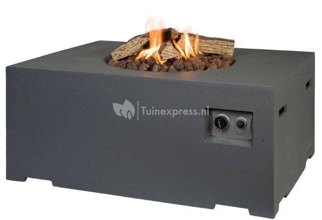 De luxe designtafel is voorzien van een ingebouwde gashaard met een fijn loungevuur zonder enige rook of vonken. De vuurtafel is uitgerust met een elektronische ontsteking en een regelknop, hierdoor kunt u met één druk op de knop het vuur aansteken en de hoogte van de vlammen trapsgewijs regelen. De krachtige brander zorgt met een vermogen van 19 kW voor een snelle opwarming waarbij de gewenste temperatuur binnen een mum van tijd wordt bereikt. Het fijne hierbij is, is dat de brander niet opvalt maar prachtig wordt gecamoufleerd door de bijbehorende lavastenen en houtblokken.