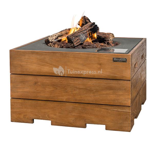 Cocoon vuurtafel teakhout vierkant antraciet
