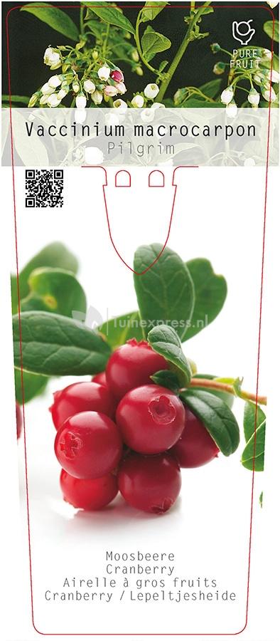 De cranberry is ook wel bekend onder de naam veenbes. Het is een laagblijvende, kruipende plant. Cranberry's zijn zuur van smaak en voor de echte liefhebber. Door vele ook gebruikt om hun geneeskrachtige werking. De plantjes staan in bloei met kleine wit/roze bloemetjes vanaf juni. Vervolgens zullen de bessen ontwikkelen die rijp zijn vanaf eind september tot november. Ook buiten de oogstperiode is deze groenblijvende bodembedekker een prima aanwinst voor uw tuin.