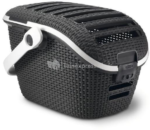 Een schitterend uitziende reismand van het merk Curver. Deze reismand met bovenlader is van het oersterke materiaal Rattan, gemaakt van een hoogwaardig gevlochten kunststof. Voorzien van een draagarm, welke u ook makkelijk kunt vastzetten in de autogordel als u met uw kleine huisdier naar bijvoorbeeld de dierenarts moet. Kleur: antraciet met een lichtgrijze draagarm en bies rondom.