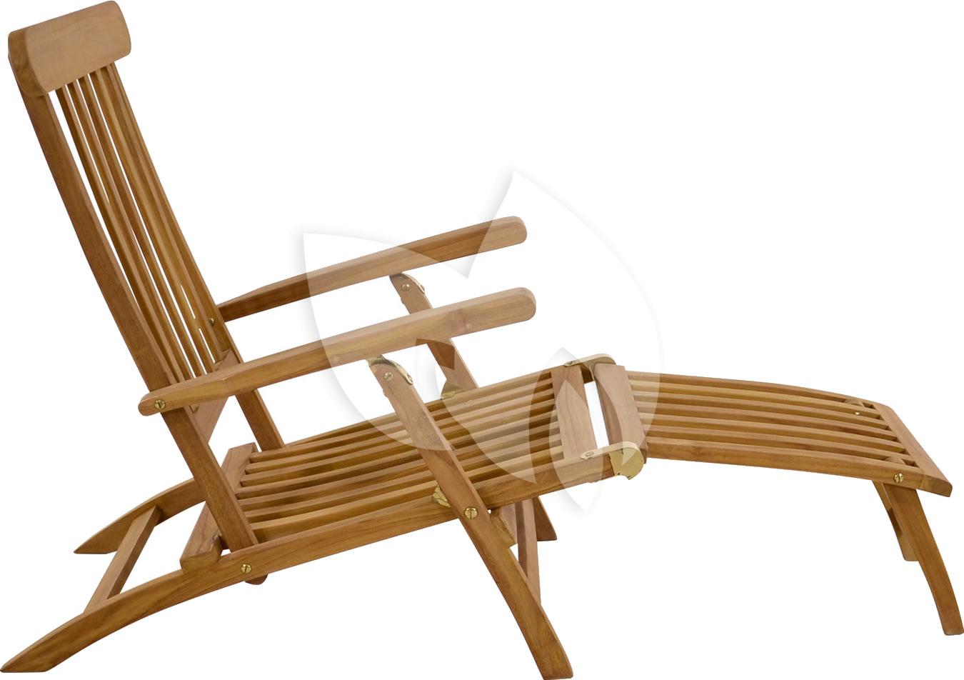 Luxe teak zonnestoel met verstelbare rugleuning en voetensteun