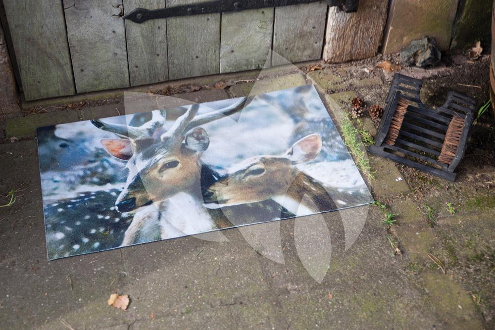 Een deurmat is een handig en functioneel product. U zelf, maar ook uw gasten, kunnen hier hun voeten aan afvegen zodat u huis vrij blijft van zand en ander vuil. Met de deurmat hert heeft u niet alleen een functionele accessoire bij de deur, maar ook een decoratieve! De deurmat heeft een prachtige print van een hert in de winter. De deurmat is gemaakt van gerecycled rubbergranulaat en ongeweven polyester aan de bovenzijde. U kunt de deurmat eenvoudig schoonmaken door hem af te vegen of door hem af te spuiten met de tuinslang.