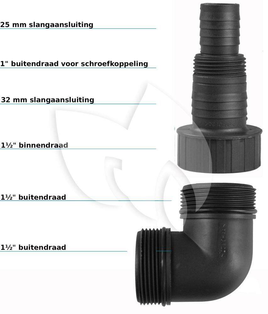 - Slangaansluiting: 25/32 mm