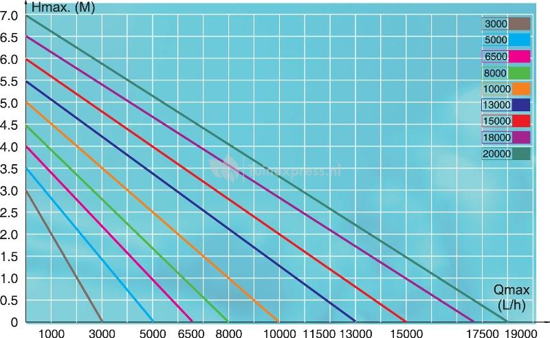 Capaciteit: maximaal 6500 liter water per uur