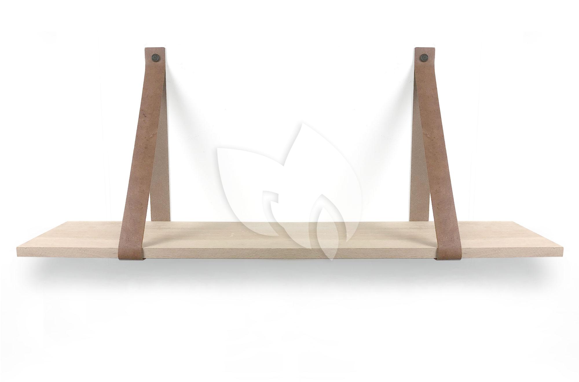 Eiken 18mm wandplank recht 100 x 20 cm inclusief leren riemen cognac