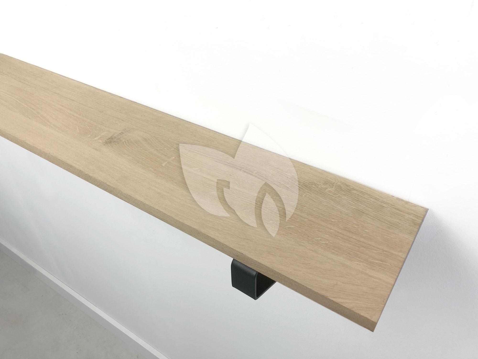 Eiken 18mm wandplank recht 90 cm op 20 cm diepe plankdragers