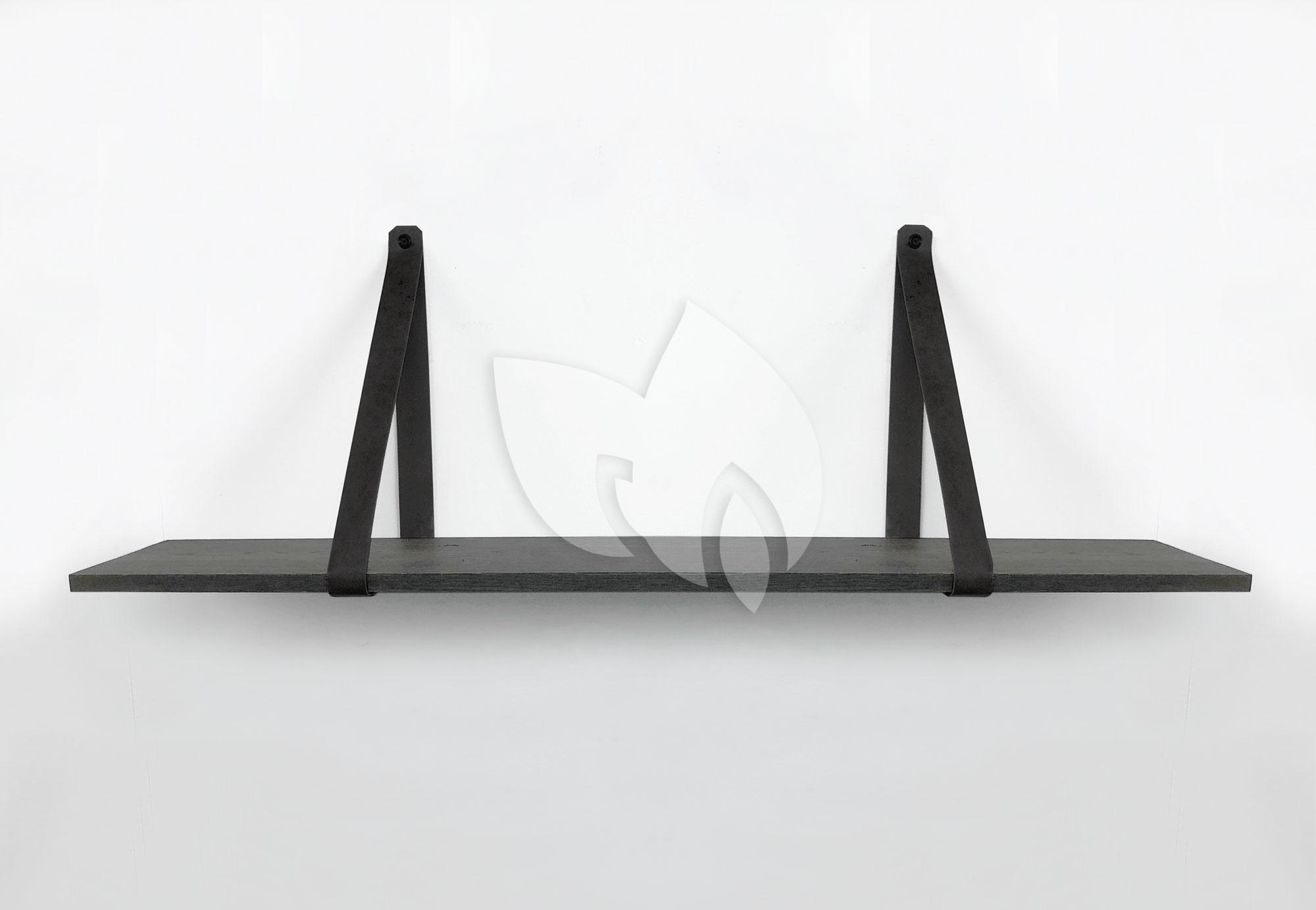 Eiken 18mm wandplank recht zwart 150 x 20 cm inclusief leren riemen zwart