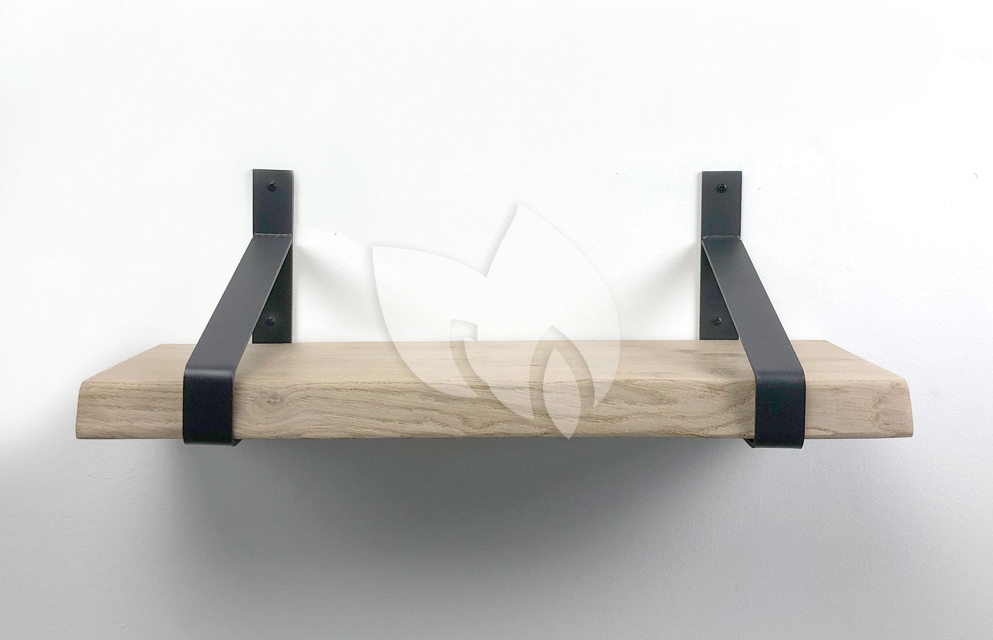Eiken wandplank boomkant 80 cm in 20 cm diepe plankdragers
