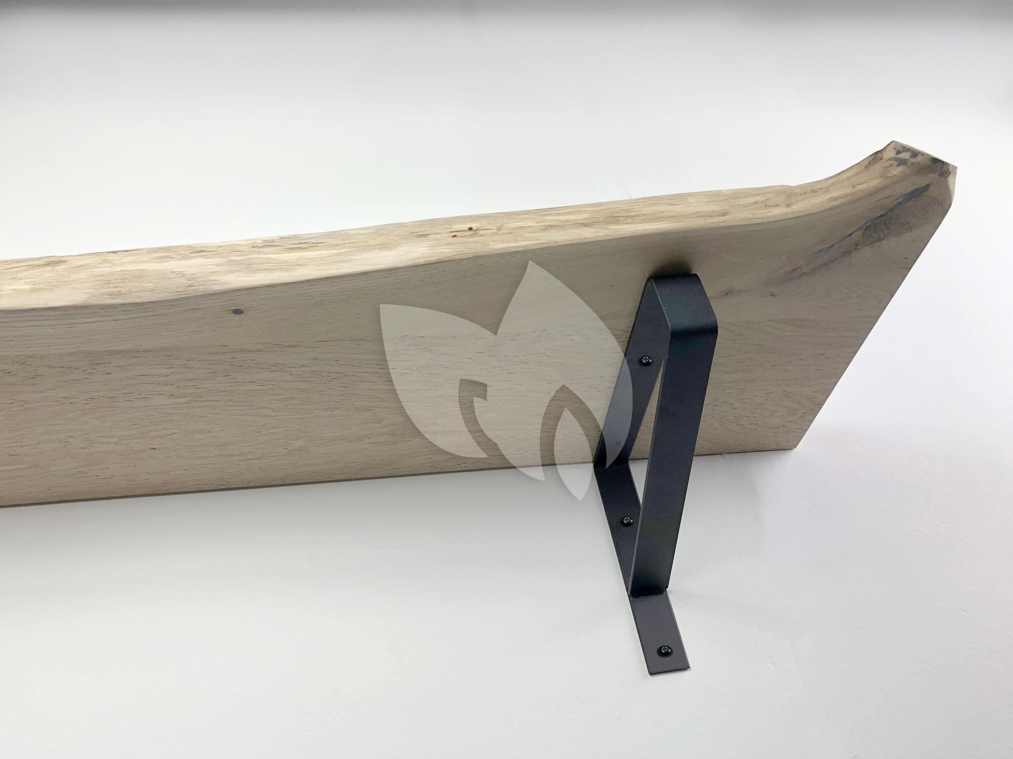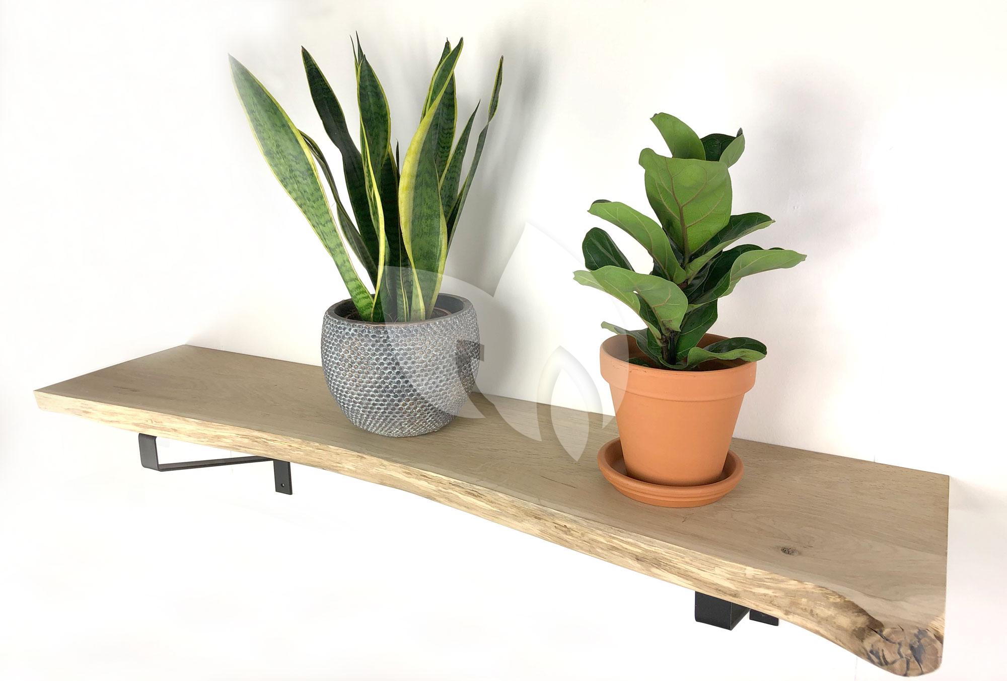 Eiken wandplank massief boomstam 60 x 30 cm inclusief plankdragers