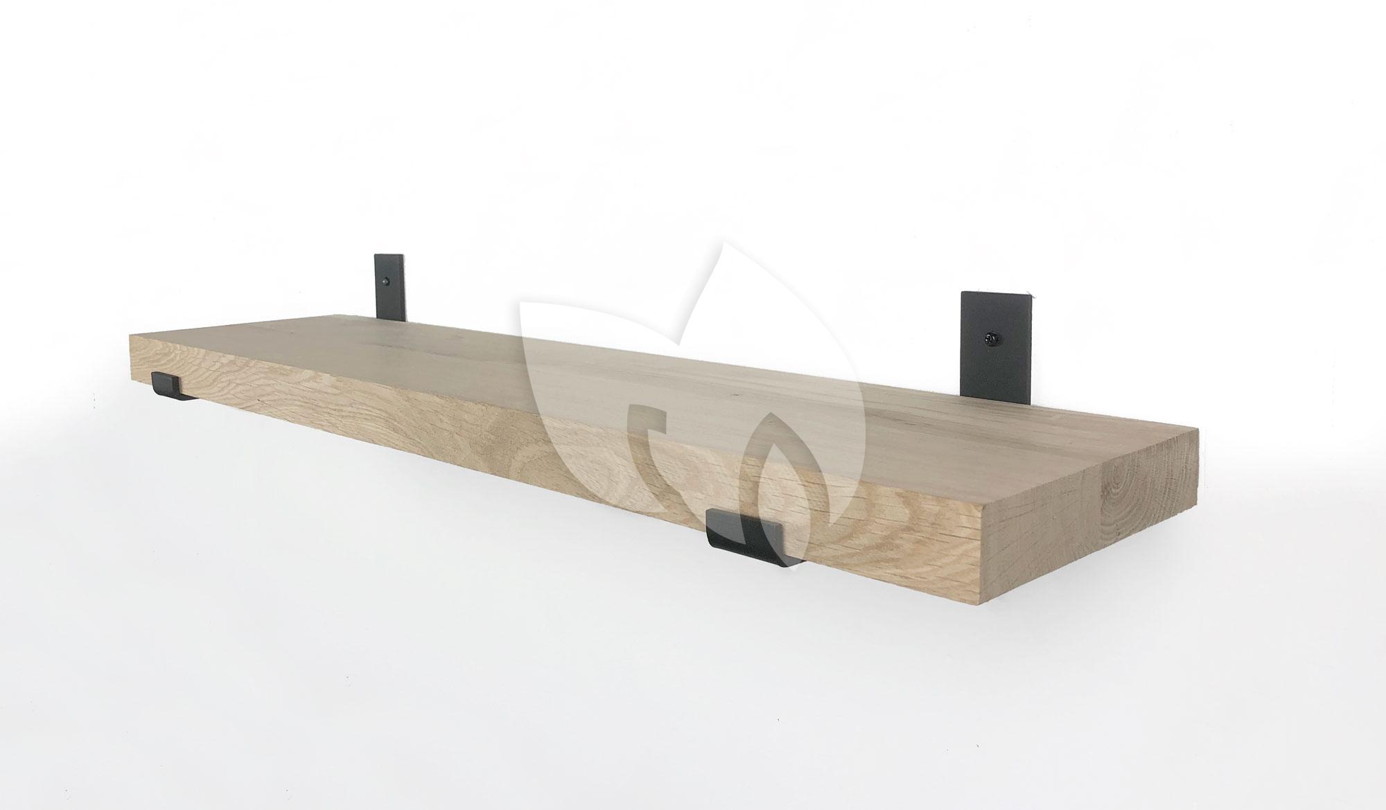 Eiken wandplank massief recht 50 x 20 cm met industriele plankdragers