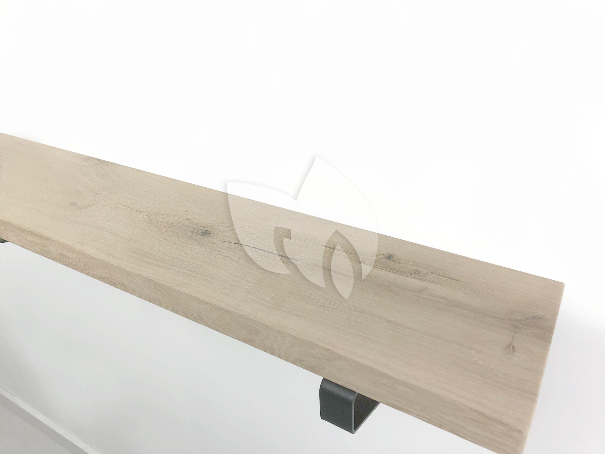 Eiken wandplank massief recht 60 cm op 20 cm diepe plankdragers