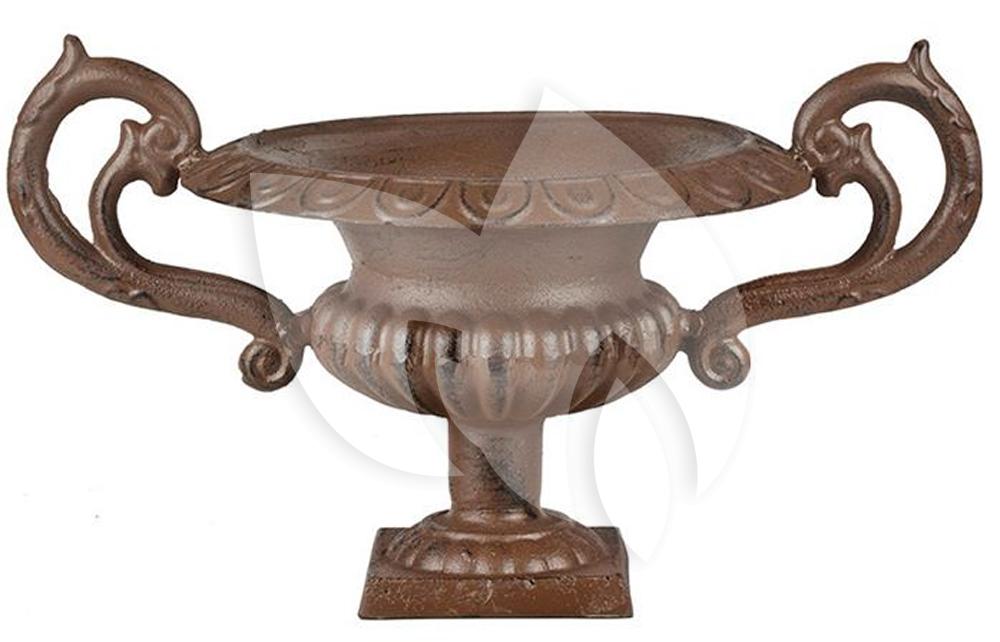 De Franse vaas met oren heeft een hoogte van 37 centimeter en zal het goed doen in iedere tuin, met name aan het einde van graspaden en doorkijkjes. De vaas heeft mooie, sierlijke rondingen en een prachtig afgewerkte poot. De Franse vaas is met de hand gegoten volgens eeuwenoud vakmanschap en traditie waardoor de vaas zeer uniek is. Niet alleen bij u in de tuin is de Franse vaas een prachtige accessoire, de Franse vaas is ook ideaal cadeau te doen aan de personen die u lief hebt.