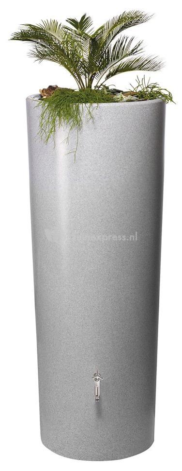 Creëer een stoere en unieke sfeer in uw tuin met deze Garantia 2 in 1 regenton en bloembak. De regenton heeft een lichtgrijze natuursteen look en is hiermee een aanwist voor iedere tuin. De bloemen of planten kunnen gemakkelijk geplaatst worden doordat de bak uitneembaar is, hierdoor is hij ook gemakkelijk schoon te maken. Planten en bloemen kunnen regelmatig vervangen worden waardoor deze regenton nooit zal vervelen. De regenton is voorzien van een tabkraantje aan de voorzijde waar u het water uit kunt halen bij gebruik. Het tabkraantje zit op een ideale hoogte waardoor er een emmer of gieter onder geplaatst kan worden.