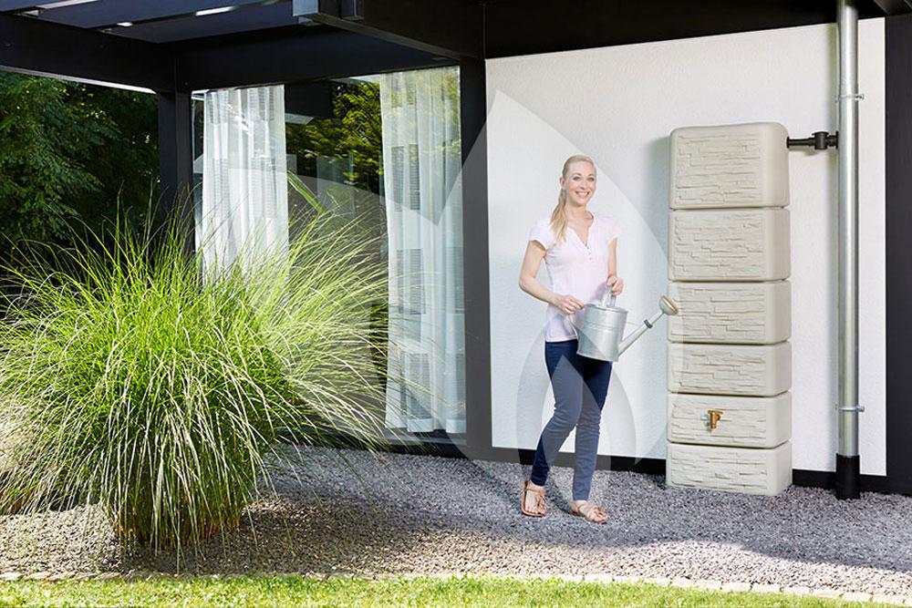Het steenmotief van deze design regenton geeft de regenton een bijzonder uiterlijk. Het maakt dat de regenton een onderdeel is van uw tuinontwerp. Het smalle, maar hoge ontwerp kan tot 300 liter water opslaan en toch maar slechts 37cm van de wand afkomen. Ideaal wanneer u wilt profiteren van de voordelen van een regenton maar een beperkte ruimte tot uw beschikking heeft.
