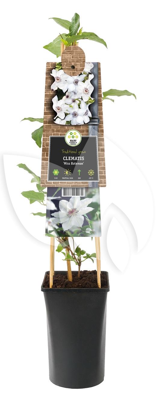 De Clematis Miss Bateman is een echte musthave voor in de tuin. De bloemen van deze klimplant zijn wit en passen daarom bij elk extrieur. Door de rustgevende kleur van de plant kan jij deze tuinplant makkelijk combineren met andere tuinplanten om vervolgens van het lekkere weer te kunnen genieten in jouw prachtige tuin.