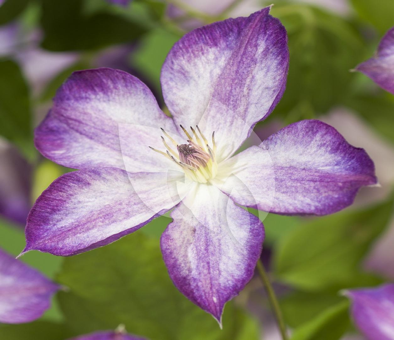 De Clematis Pernille is een prachtige klimplant voor in de tuin die in volle bloei staat in de zomermaanden. De plant is voorzien van prachtige wit met paars gekleurde bloemen die erg sfeervol zijn. De plant klimt het liefst op tegen een muur waar de meeste zonnestralen komen op een dag.