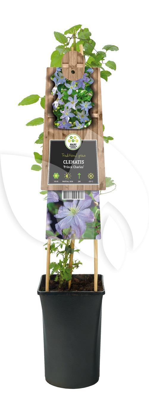 Wil jij jouw tuin er van de zomer sfeervol bij hebben staan? De Clematis Prince Charles is een echte eyecatcher voor in de tuin. De Clematis is een klimplant waar prachtige bloemen uit bloeien. Uit deze Clematis bloeien lichtblauwe bloemen die erg sfeervol zijn. Plaats de plant op een zonnige plek in de tuin en geniet met volle teugen tijdens de zomermaanden.
