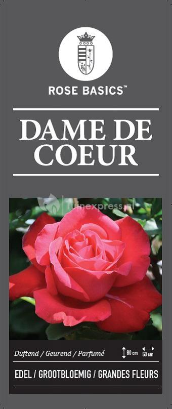 Dame de Coeur is een echte romantische roos zoals wij de rozen graag zien; donkerrood van kleur en prachtig vol. Daarnaast geurt deze bijzonder mooie roos ook heerlijk zonder overheersend te zijn. Deze sierlijke roos op stam is een fantastische aanvulling in iedere tuin. Door de stamvorm neemt de roos minder ruimte in beslag waardoor de plant ook zeer geschikt is voor de kleiner tuinen of als potbeplanting.