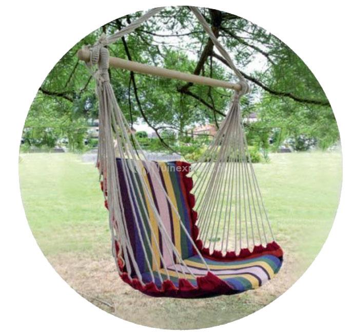 De hangmatstoel is gemaakt van 65% katoen en 35% polyester en biedt het ultieme comfort. De stoel is ideaal om een boek te lezen, een dutje te doen of gewoon even in te schommelen. De stoel beschikt over diverse koorden aan beide zijden waardoor het gewicht goed verdeeld wordt over de stoel, hierdoor kan de stoel een gewicht tot wel 120 kg dragen.