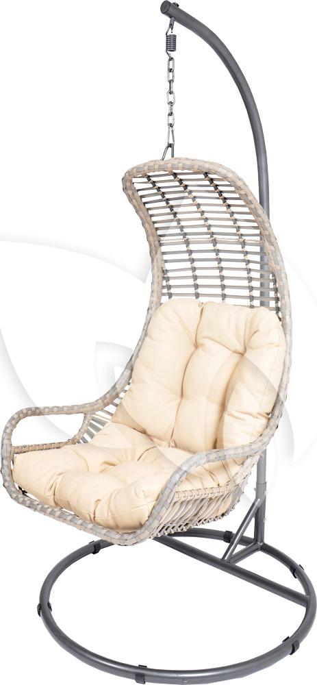 De hangstoel heeft een stevig standaard waar de hangstoel aan bevestigd is, zo hoeft u de hangstoel niet zelf meer aan het plafond te bevestigen en bent u niet gebonden aan één vaste plaats voor de stoel. U kunt de stoel ieder gewenst moment van plaats veranderen. Het standaard en het vlechtwerk van de hangstoel zijn weerbestendig en onderhoudsvriendelijk waardoor u de stoel met een gerust hart buiten kan laten staan. Het vlechtwerk heeft een breedte van 15 millimeter en heeft door zijn taupe kleur een natuurlijke uitstraling. De bijgeleverde kussens zorgen voor een optimaal zitcomfort en geven de stoel daarbij een sfeervolle en knusse uitstraling. Deze kleuren zijn mooi te combineren met uw huidige tuinmeubelen of tuinset. Heerlijk ontspannen met een goed boek of een borrel doet u in de hangstoel Relax Sandy!