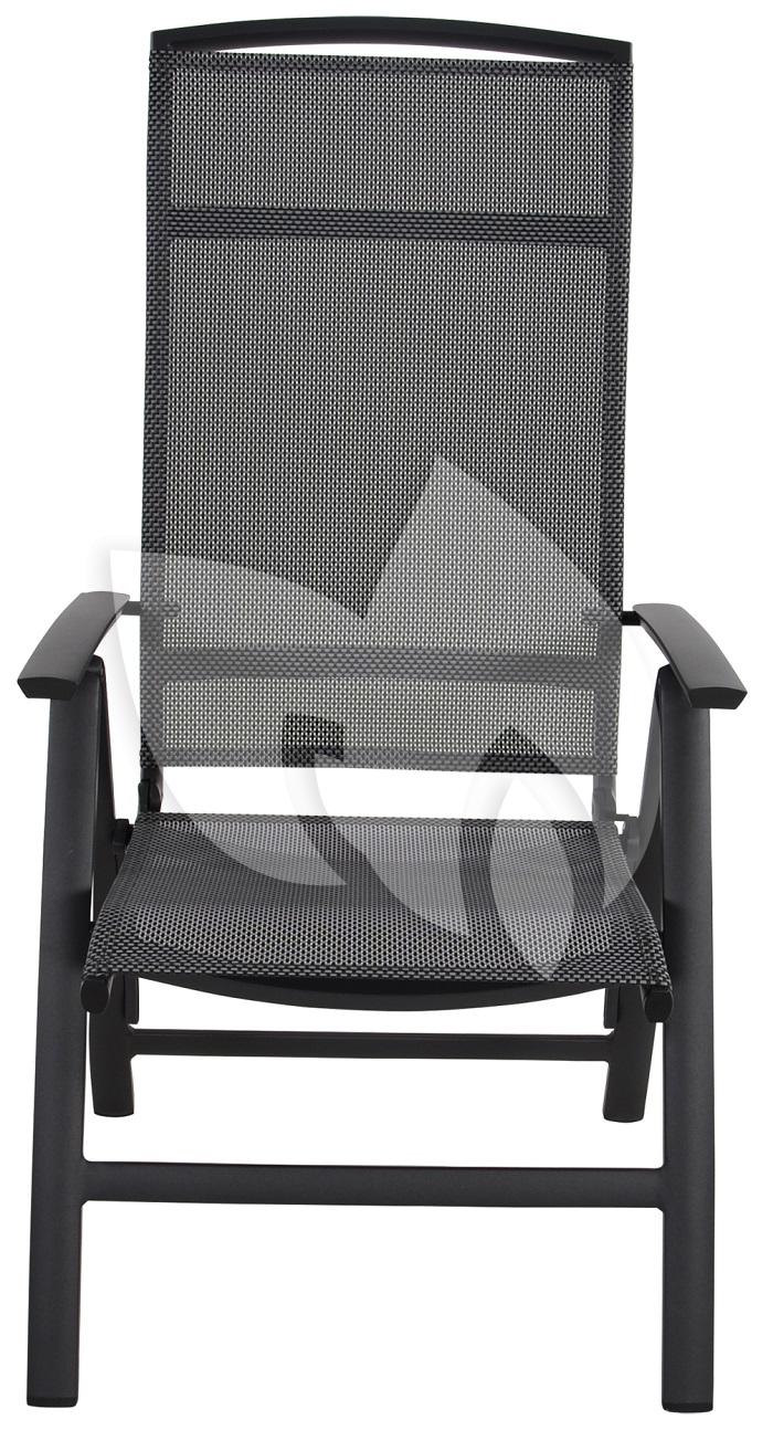 De donkergrijze Hera Standenstoel klapstoel is een tuinstoel met een door middel van de armleuningen verstelbare rugleuning. Het lichtgewicht aluminium frame is afgewerkt met een antraciet poedercoating met een matte finish. De zitting en de rugleuning zijn bespannen met een weer- en UV-bestendige stof van outdoor kwaliteit.