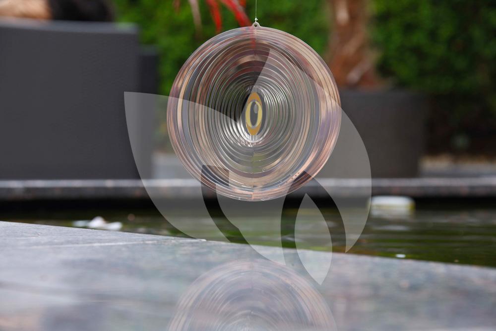 De Heron Spinner werkt in principe hetzelfde als bij raketlanceringen om vogels weg te houden. De Heron Stop Spinner beschikt over een oog van een roofvogel en spiegelend materiaal wat licht reflecteert. Door de draaiende hanger vlakbij de de vijverrand te plaatsen zullen reigers en andere ongeweste vogels schrikken, wegvliegen en ook niet snel meer terugkomen. U kunt de Heron Stop Spinner ook gebruiken voor het weggjagen van duiven op uw balkon. De Heron Stop Spinner is gemaakt van spiegelend RVS en roteert door de wind. Voor een versterkend effect kunt u meerdere spinners plaatsen.