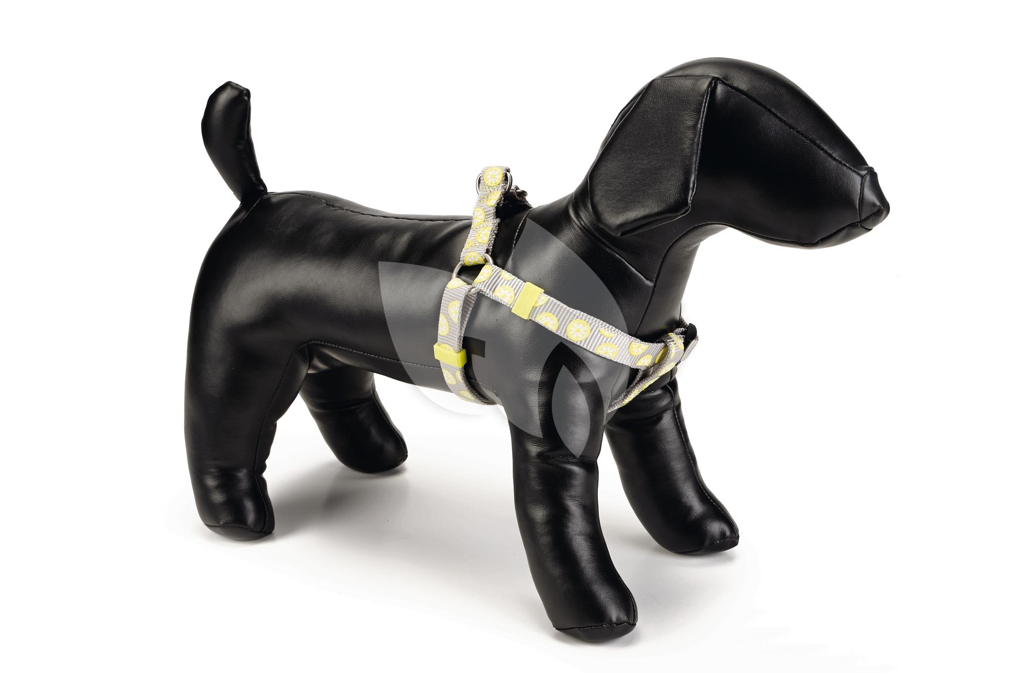 Met het Beeztees Lemon hondentuig herken je jouw hond meteen! Dit grappige en effectieve hondentuig is verstelbaar en is gemakkelijk om te doen bij jouw hond. Jouw hond kan met zijn voorpoten in het borsttuig stappen, waarna het door middel van een kliksluiting is vast te maken. Het hondentuig is voorzien van citroentjes en heeft een soort rubberen gespjes, welke zorgen voor een leuk accent. Verschillende hondenriemen kunnen worden bevestigd aan dit hondentuig, waarna je er lekker samen op uit kan gaan met je maatje! - Gemaakt van nylon - Te combineren met verschillende looplijnen - Verkrijgbaar in 4 maten Afmetingen: - 26-40 cm x 10 mm - 35-60 cm x 15 mm - 46-75 cm x 20 mm - 60-100 cm x 25 mm