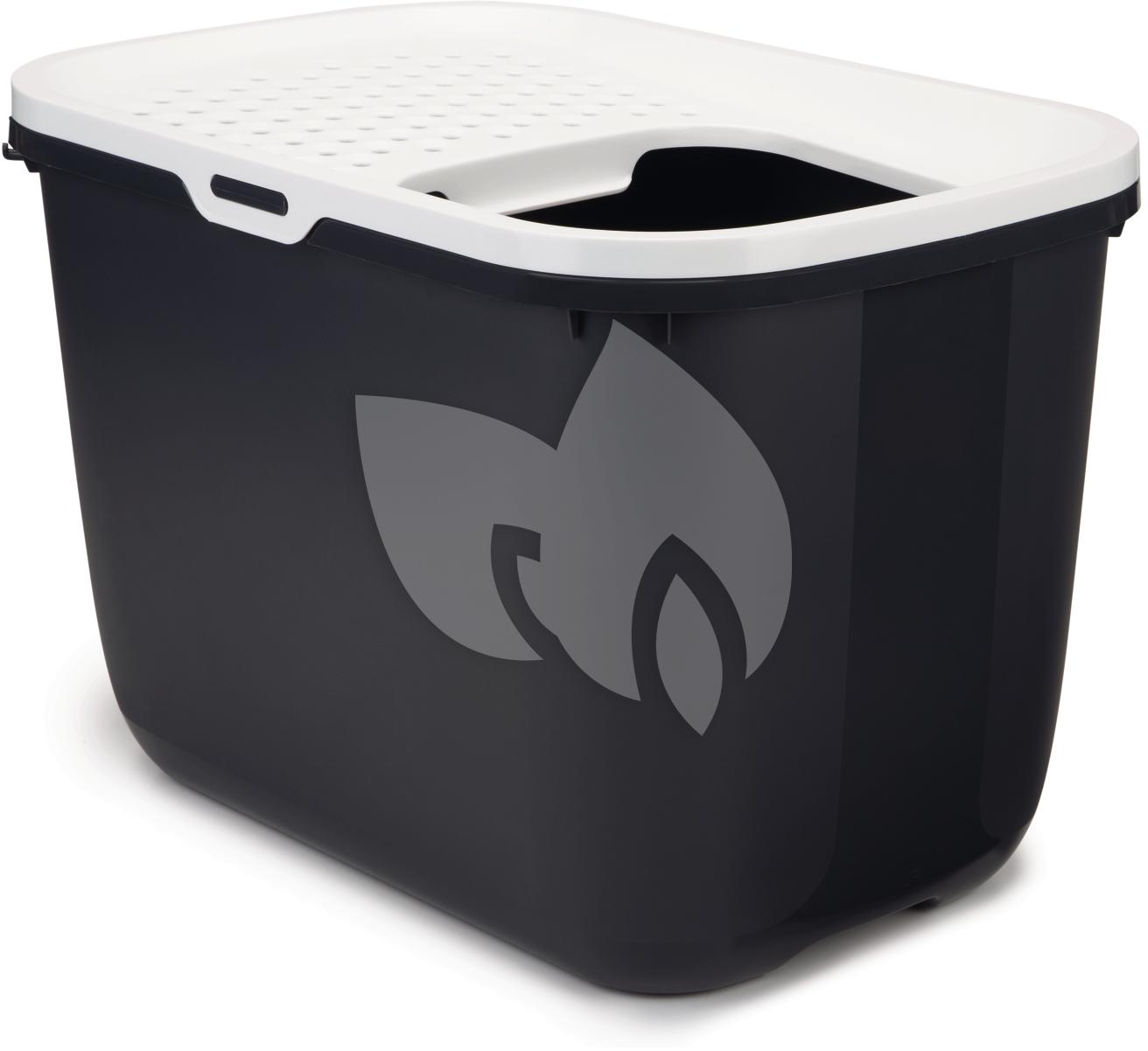 De Hop In kattenbak van Savic heeft de ingang aan de bovenkant zitten. Zo kunnen katten verscholen hun behoefte doen en de kattenbakvulling komt niet makkelijk de kattenbak uit. Daarnaast is de Hop In kattenbak onbereikbaar voor honden en kruipende kinderen. De Hop In is een hoge kattenbak die je eenvoudig kan schoonmaken en vullen met kattenbakvulling, mede dankzij de compleet afneembare deksel. De kattenbak heeft een handig ophanghaakje voor een kattenbakschep (deze is niet inbegrepen). De afmeting van de kattenbak is 58,5 x 39 x 39,5 cm en is verkrijgbaar in het antraciet.