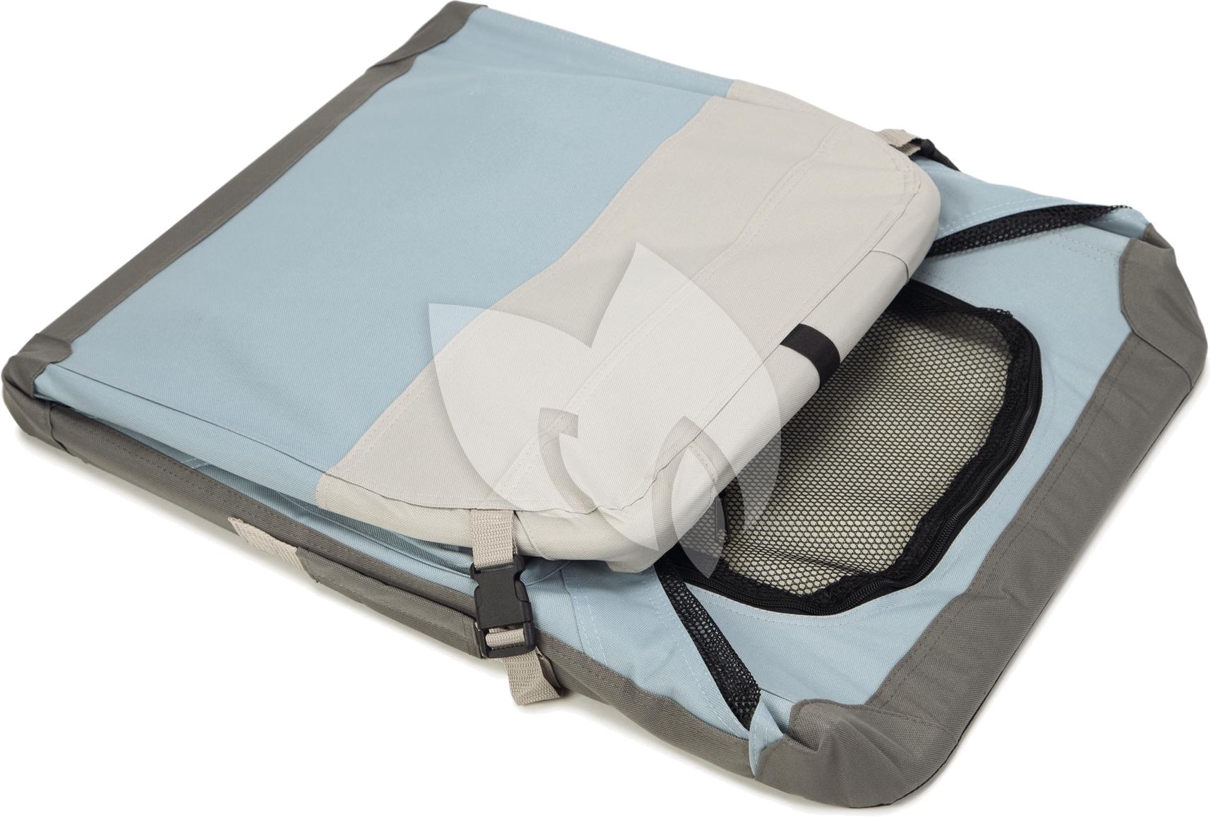 De Beeztees Travel Time bench is een zeer handige en opvouwbare nylon bench. Deze bench kan worden opgezet en af worden gebroken in een paar seconde. Zodra de bench is ingeklapt, kun je deze in de reistas stoppen, zodat je de bench gemakkelijk mee kunt nemen. De bench heeft aan de bovenkant twee handvaten, zodat je de bench gemakkelijk mee kunt dragen. Verder bevat de bench voldoende ventilatie en heeft het een opbergvak, om jouw waardevolle spullen in te bewaren. De bench is inclusief een mat gemaakt van schapenvacht. Al met al, een multifunctionele bench om jouw huisdier veilig in te vervoeren. - Gemaakt van nylon - Voorzien van ventilatiegaten, handvaten en een opbergvak - Inclusief een mat van schapenvacht en een handige draagtas - Verkrijgbaar in 2 kleuren en 5 maten Afmetingen: - 49x34x35 cm - 60x42x42 cm - 70x52x52 cm - 81x58x58 cm - 91x63x63 cm - 102x69x69 cm