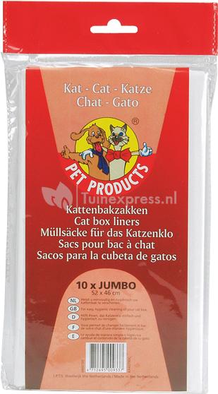 Kattenbakzakken Jumbo. Geschikt voor elke kattenbak. U plaatst de zak in het kattentoilet, vult het kattentoilet met grit of korrels en wanneer het toilet verschoond dient te worden, gebeurt dat in een handomdraai door simpelweg de inhoud inclusief kattenbakzak te legen. Zo blijft u bespaard van een vies kattentoilet.