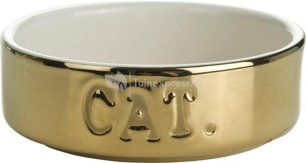 Een modieuze keramieke ronde eet of drinkbak, welke zeker opvallend is door de goudkleur.