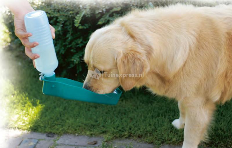 Met deze draagbare drinkfles heeft u een flesje en bakje in één. Altijd voorzien van schoon drinkwater voor uw hond voor bijvoorbeld op de camping, tijdens het wandelen of in de auto.