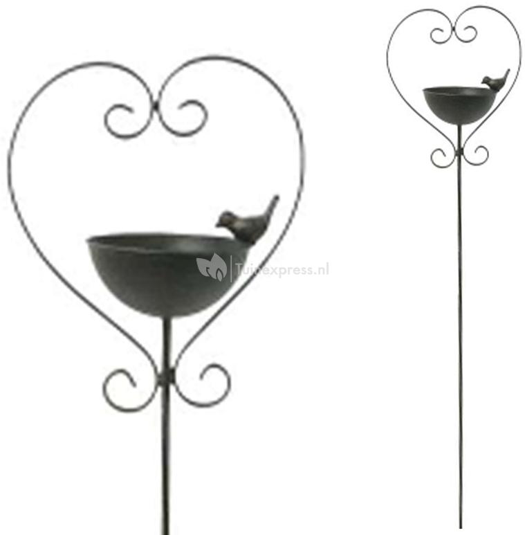 Vogelbad hartvorm op prikker H140 cm - metaal
